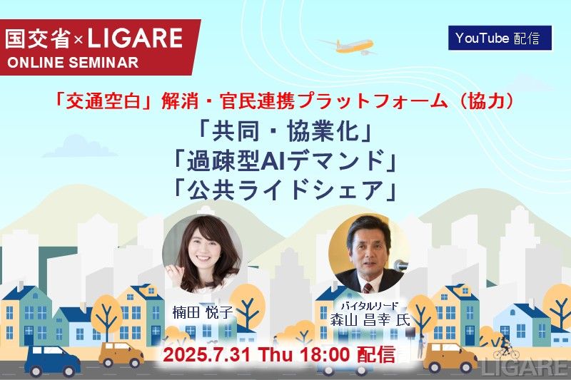 【自治体モビリティテックセミナー】国土交通省×LIGARE「交通空白」解消・官民連携プラットフォーム(協力) 「共同・協業化」「過疎型AIデマンド」「公共ライドシェア」 2025年7月31日(木)開催