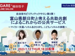 【自治体モビリティテックサロン】朝日町寺崎氏・博報堂畠山氏が登場「富山県朝日町と考える共助共創によるこれからの公共サービス 〜マイカー交通ノッカルあさひまち、こどもノッカルの挑戦〜」1月12日(木)開催