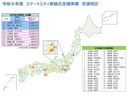 国土交通省は4月10日、2026年度のスマートシティ実装化支援事業の公募を行い、先進的な都市サービスの実装化に向けて取り組む9地区の実証事業の支援決定を発表した。今回の取り組みでは、戦略的スマートシティ実装タイプ3都市と都市サービス実装タイプ6都市が選ばれている。