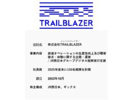 西日本旅客鉄道株式会社(以下、JR西日本)は9月28日、JR西日本グループのデジタル変革を推進する株式会社 TRAILBLAZER(トレイルブレイザー)を10月2日に設立すると発表した。