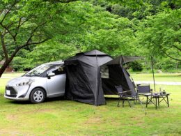 約5分で簡単設営 さまざまな車種に対応したカーサイドタープ登場