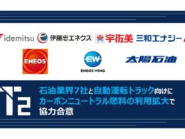T2は8月7日、出光興産、伊藤忠エネクス、宇佐美鉱油、三和エナジー、ENEOS、ENEOSウイングおよび太陽石油の石油業界7社と、カーボンニュートラル燃料(以下、CN燃料)の利用を拡大するために、相互に協力していくことで合意したことを発表。