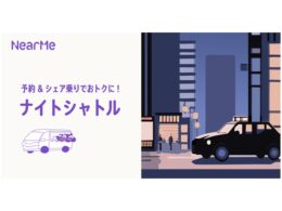 株式会社NearMe(以下、ニアミー)と日の丸交通株式会社(以下、日の丸交通)は12月21日、タクシーの「シェア乗りサービス」を夜間から早朝時間帯に限定したナイトシャトルとして予約・運行開始を発表した。「シェア乗りサービス」の目的は、夜間・早朝における移動の需給バランスへの対応だ。