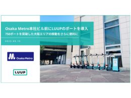 株式会社Luup(以下、Luup社)は、大阪市高速電気軌道株式会社(以下、Osaka Metro)本社ビル前に電動マイクロモビリティのシェアリングサービス「LUUP(ループ)」のポート導入を発表した。