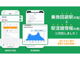 株式会社ナビタイムジャパンは、2月8日から乗換案内アプリ『乗換NAVITIME』にて「乗換回避駅指定検索」と「駅混雑予報」の提供を開始した。駅の混雑情報を確認しながら、混雑している駅・バス停を避けたルートを検索でき、人混みを避けた移動をサポートする。