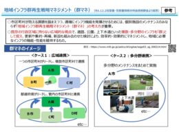 国土交通省は12月1日、地域インフラ群再生戦略マネジメント(以下、群マネ)の検討を行う11件(40地方自治体)のモデル地域の選定結果を発表した。国土交通省は、群マネの取り組みを全国的に展開していくため、群マネの計画策定や業務の実施に関して、具体的に検討を進めていくこととしている。