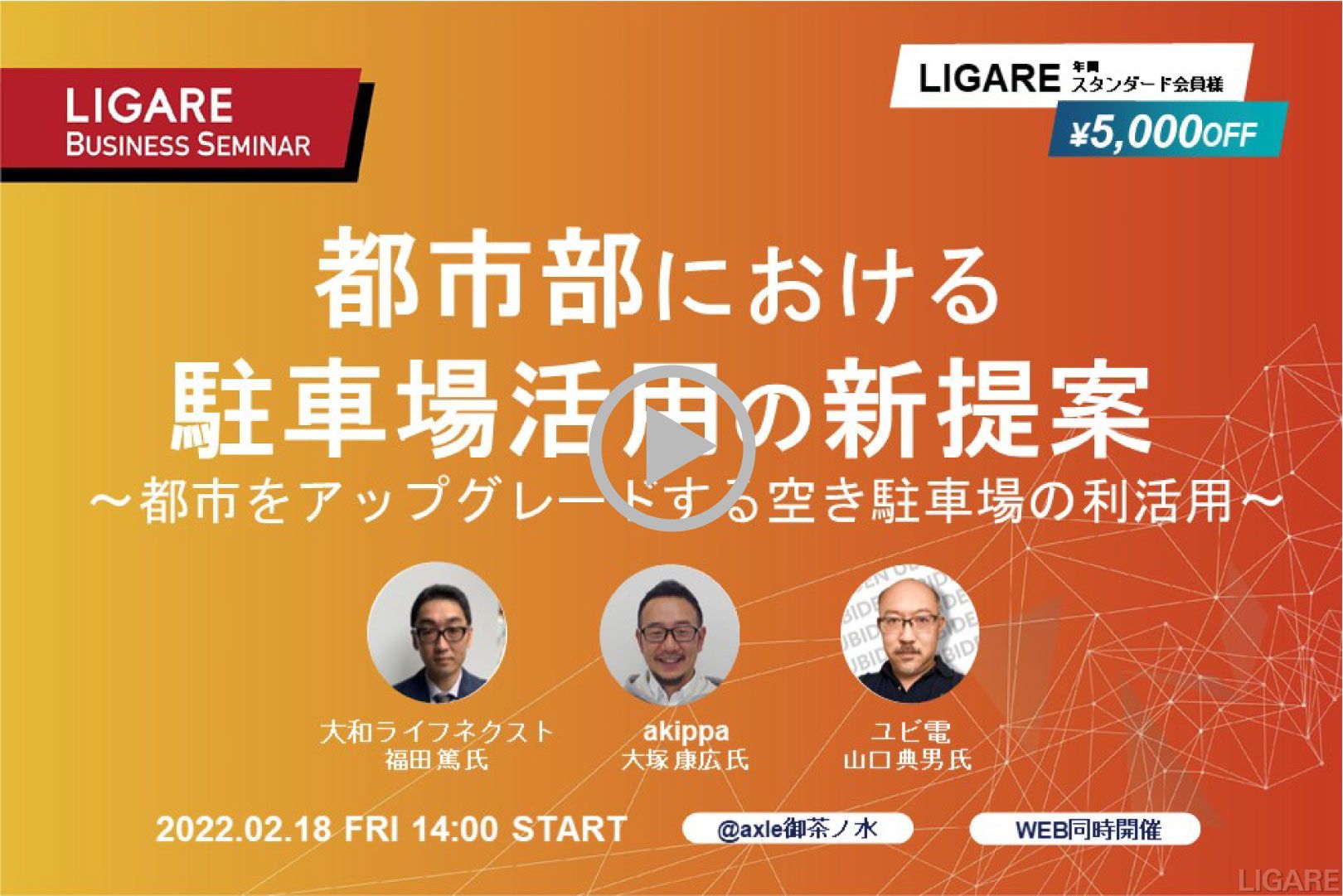 【セミナー動画】2022/2/18 大和ライフネクスト・akippa・ユビ電が登壇「都市部における駐車場活用の新提案 〜都市をアップグレードする空き駐車場の利活用にせまる〜」