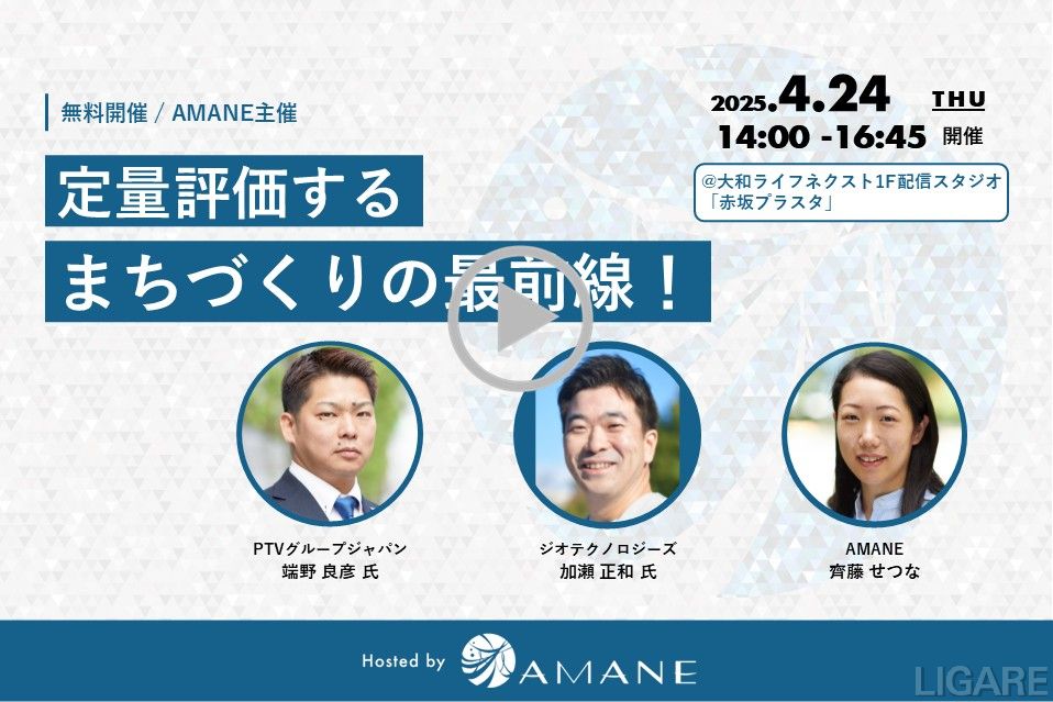 【セミナー動画】2025/4/24 PTV・ジオテクノロジーズ・AMANEが登壇「定量評価するまちづくりの最前線!」
