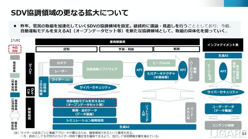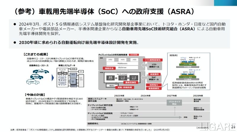 ――SDVは「戦略」の中核となる領域だ。「戦略」が2024年5月に始動して以来の総括を。「戦略」の趣旨は、自動車産業の構造が大きく変わる中でも競争力を維持・拡大すること。そのために、産官学が協調できる領域では最大限力を合わせた上で、個社として競争する。協調領域の一例が、仕様の共通化。SDVに欠かせない半導体 (System on Chip、SoC)開発では、政府も出資して「自動車用先端SoC技術研究組合」(ASRA、読み:アスラ)を設立して、自動車OEM、サプライヤー、半導体メーカーなど現在14社が共同で開発を進めている。これは、企業が次世代で必要となる技術を全て自前で開発するのは非効率であり、困難という共通認識があるからに他ならない。
