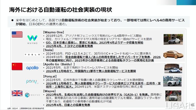 都市部で自動運転タクシーを運行することで早く収益に結び付くとみているのでは。また、米中ではアプリによるタクシー配車がすでに浸透しており、自動運転タクシーに対する社会受容性の高さにつながっていると感じている。