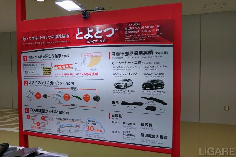 リサイクルの一つの方向性として、設計段階から環境負荷を下げる易解体性・易リサイクル性を高めておくアプローチがある。豊田鉄工が開発した樹脂加工技術「とよとつ」は、その代表例だ。「とよとつ」は、接着剤を使用せずに樹脂部品を組み立てられるため、廃車時の分別工程が簡素化され、材料リサイクルの効率向上に寄与する。また、裏面に微細な凸形状を付与することで柔らかな触感を表現でき、運転席周りのアームレストやインパネ、コンソールなど幅広い部位で採用されている。注目すべきは、この技術がスバルやマツダといったトヨタグループ外のメーカーにも採用されている点だ。2016年に愛知環境賞優秀賞、2019年には3R推進功労者等表彰の経済産業大臣賞を受賞しており、外部からの評価でも素材としての優秀さが裏付けられている。