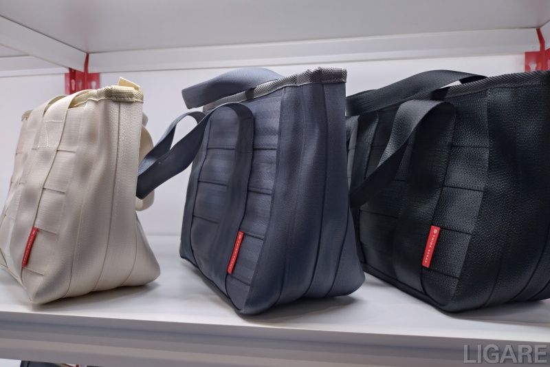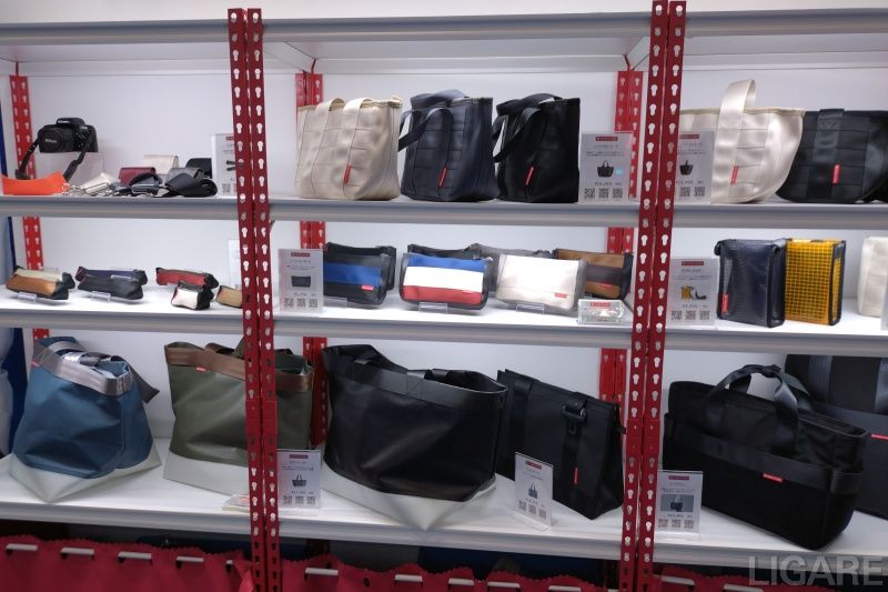 リサイクルを前提に設計していても、素材が複合化していたり分離が困難だったりと、必ずしもすべての部品を再資源化できるわけではない。そのような場合の選択肢として、自動車以外の用途に再利用するアップサイクルがある。プラスチック以外の例だが、東海理化が展開するアップサイクルブランド「Think Scrap」では、シートベルトの高い強度や汚れにくさといった特性を生かし、端材をバッグや小物類(ペンケースなど)へと再生している。JMS2025では実物が展示されており、手ざわりはまさにシートベルトそのものだが、デザイン性が高く、外観だけでは端材由来だとは分からない仕上がりだった。Think Scrapの製品は東海理化の公式サイトでも購入することができる。