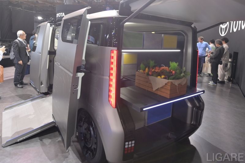 今回展示されたKAYOIBAKOは、フットペダルが設けられておらず、ハンドルだけで運転操作をできる設計となっている。この仕様により、足に障害があるドライバーでも運転が可能になる。普段使用するパーソナルモビリティがそのまま運転席として格納される、ユニバーサルデザインの発想も盛り込まれている。