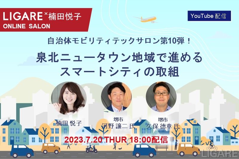 【自治体モビリティテックサロン】堺市の河野氏・久保氏が登場「泉北ニュータウン地域で進めるスマートシティの取組」7月20日(木)開催