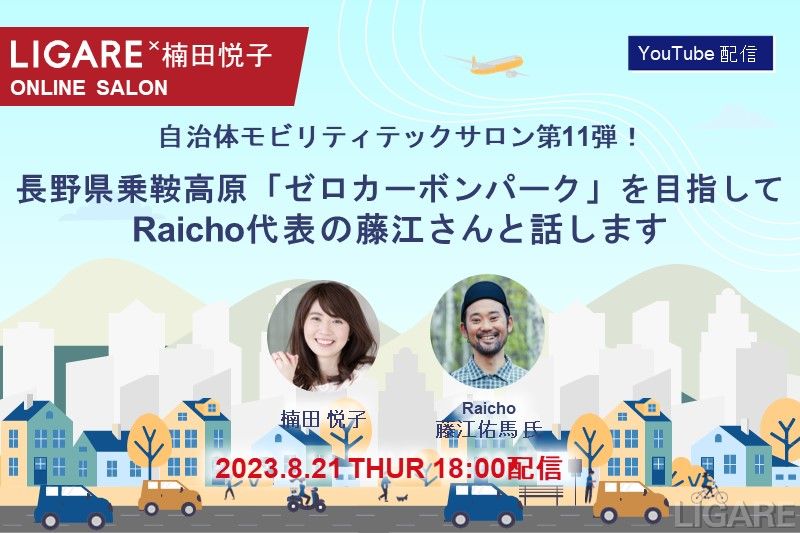 【自治体モビリティテックサロン】Raicho代表の藤江氏が登場「長野県乗鞍高原『ゼロカーボンパーク』を目指して Raicho代表の藤江さんと話します」8月21日(月)開催