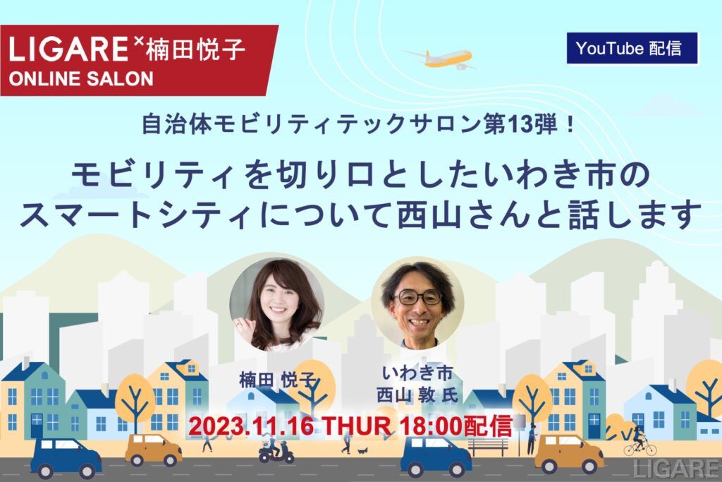 【自治体モビリティテックサロン】いわき市の西山氏が登場「モビリティを切り口としたいわき市のスマートシティ」11月16日(木)開催