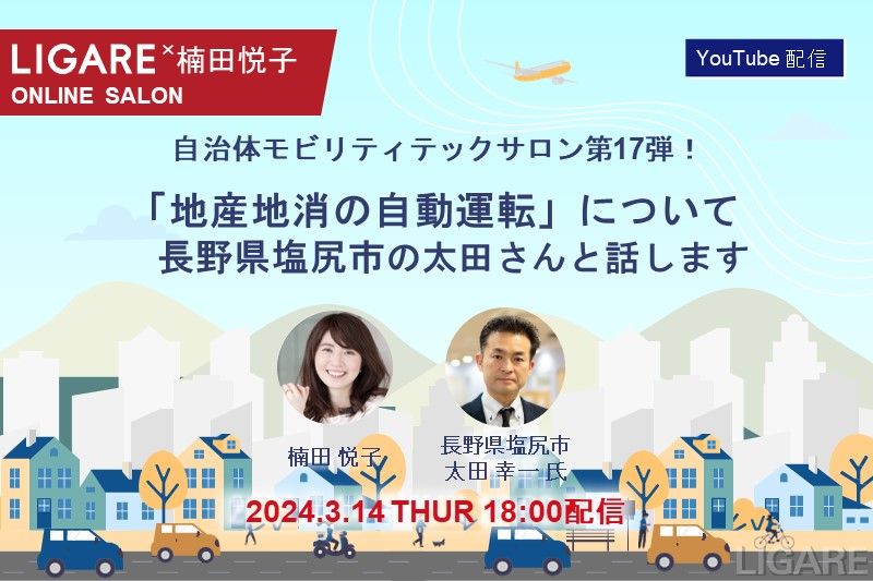 【自治体モビリティテックサロン】長野県塩尻市の太田氏が登場「地産地消の自動運転」について」2024年3月14日(木)開催