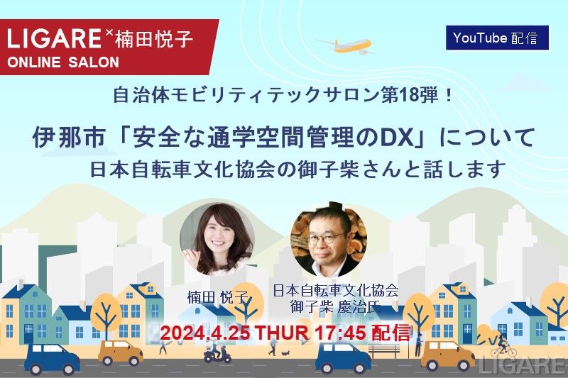【自治体モビリティテックサロン】日本自転車文化協会の御子柴氏が登場「伊那市「安全な通学空間管理のDX」について」2024年4月25日(木)開催