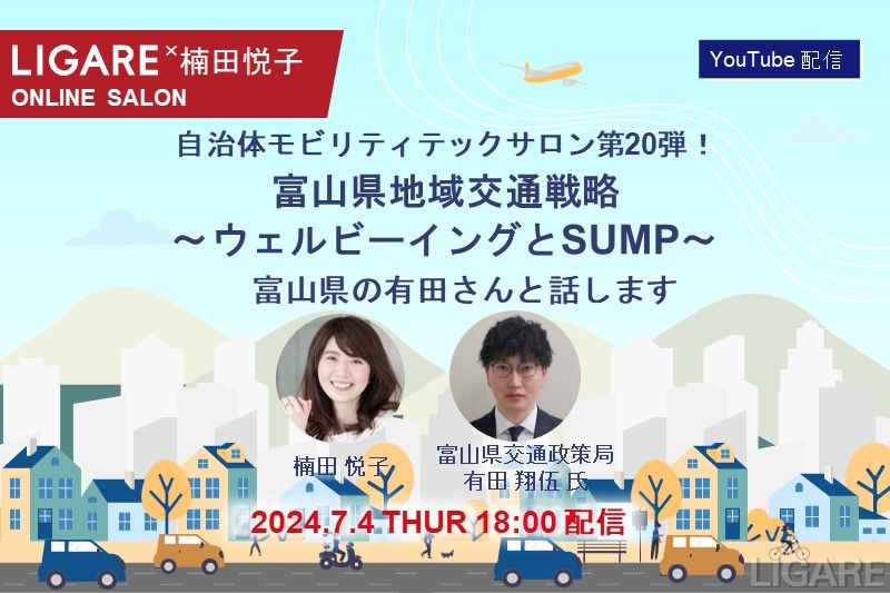 【自治体モビリティテックサロン】富山県の有田氏が登場「富山県地域交通戦略〜ウェルビーイングとSUMP〜」2024年7月4日(木)開催