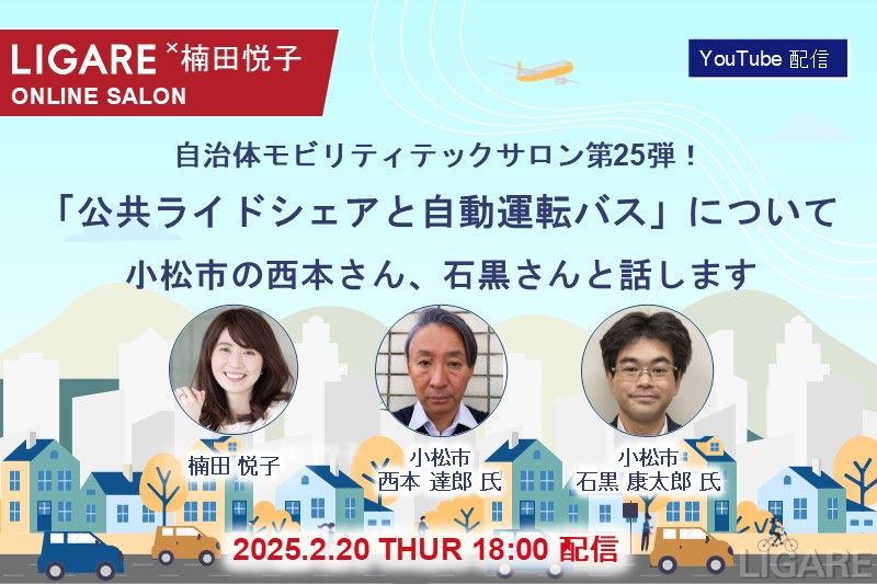 【自治体モビリティテックサロン】小松市 西本氏、石黒氏が登場 「公共ライドシェアと自動運転バス」2025年2月20日(木)開催