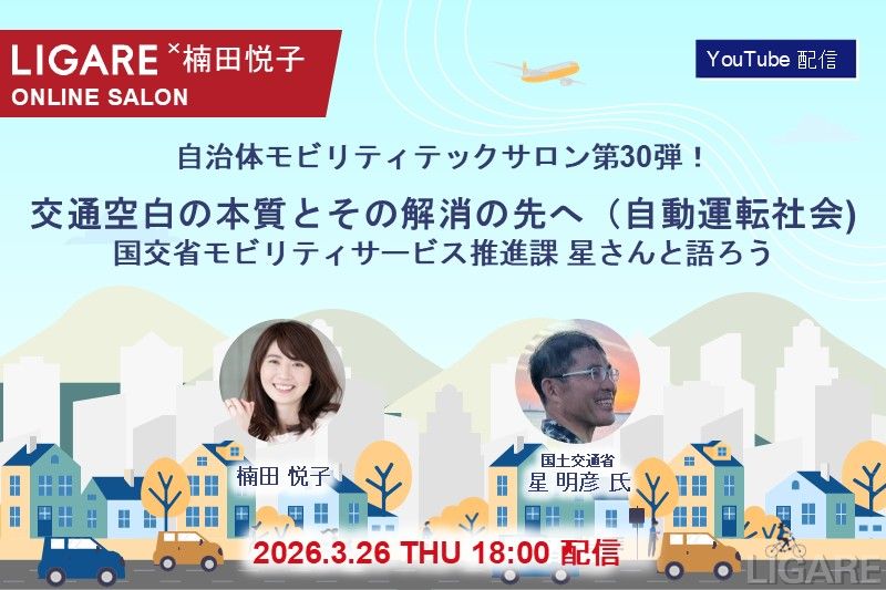 オンデマンド交通や自動運転などテクノロジーを地域に実装していく上では、自治体との連携が不可欠ですが、最先端の取り組みについて、実務で気になるポイントを気軽に質問ができる機会や、ノウハウを共有する機会は限られています。そこで、LIGAREでは自治体での導入知識・ノウハウを共有するチャンネルを開設いたします。自治体担当者が実務を行う上で課題に感じた点や、導入して効果があった施策を共有し、政策立案・産官学の連携にお役立ていただきたいと考えています。今後は、リアルタイム配信だけでなく、オンラインでの交流会なども予定しています。また、配信した動画はYouTubeチャンネル上で無料で視聴いただくことが可能です。
