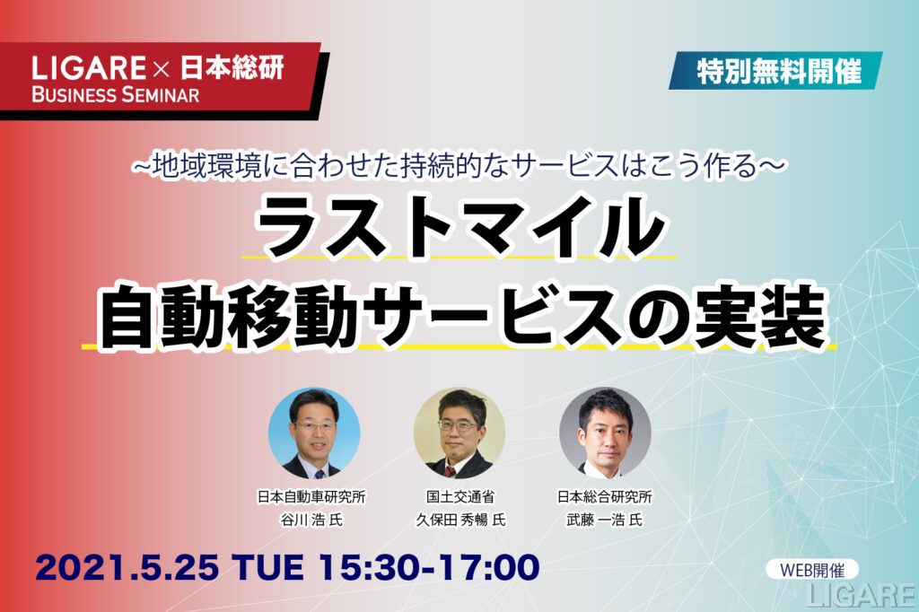 【特別無料開催】JARI・国交省・日本総研が登壇「ラストマイル自動移動サービスの実装~地域環境に合わせた持続的なサービスはこう作る~」5月25日(火)開催
