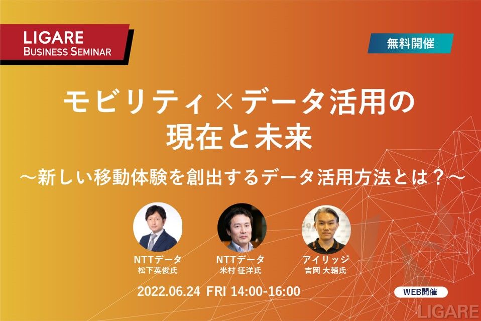 NTTデータ・アイリッジが登壇「モビリティ×データ活用の現在と未来 〜新しい移動体験を創出するデータ活用方法とは?〜」6月24日(金)開催