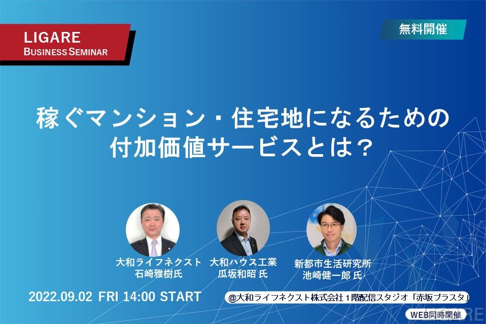 大和ライフネクスト・大和ハウス工業・新都市生活研究所が登壇「稼ぐマンション・住宅地になるための付加価値サービスとは?」9月2日(金)開催