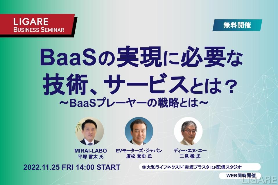 MIRAI-LABO・EVモーターズ・ジャパン・ディー・エヌ・エーが登壇「BaaSの実現に必要な技術、サービスとは? 〜BaaSプレーヤーの戦略とは〜」11月25日(金)開催