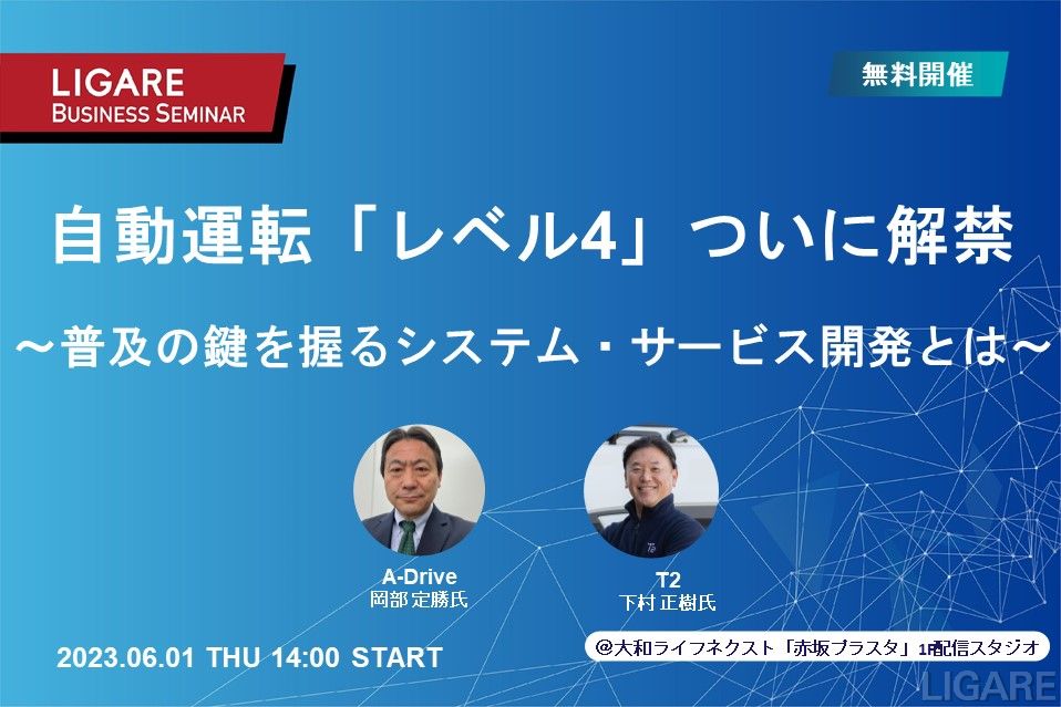 A-drive・T2が登壇「自動運転「レベル4」ついに解禁 ~普及の鍵を握るシステム・サービス開発とは~」6月1日(木)開催