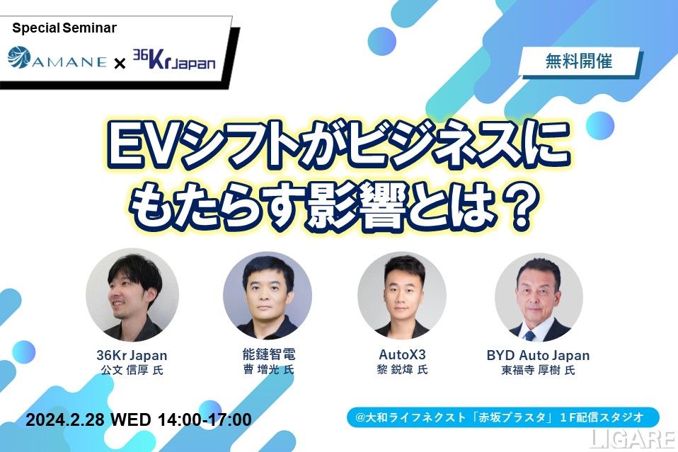 BYD Auto Japan他3社が登壇「EVシフトがビジネスにもたらす影響とは?」2024年2月28日(水)開催 36Kr Japan×AMANE特別セミナー