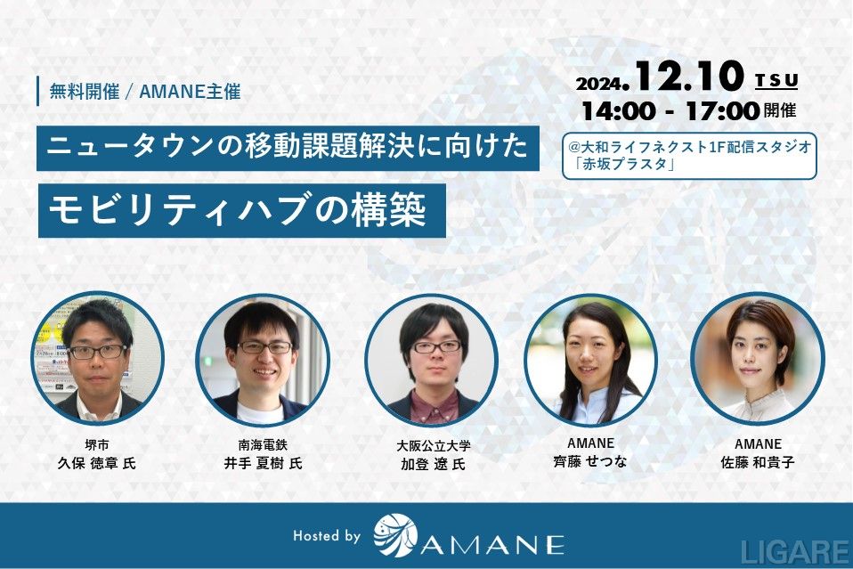 2024年12月10日(火)開催|堺市・南海電鉄・大阪公立大学・AMANEが登壇「ニュータウンの移動課題解決に向けたモビリティハブの構築」