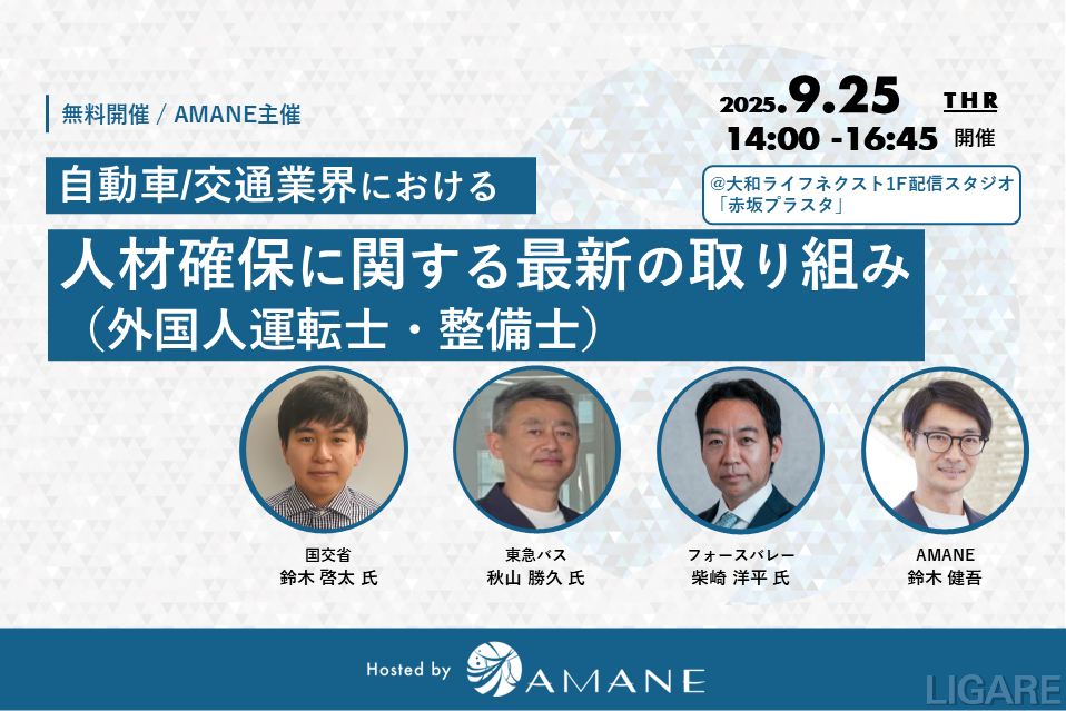 2025年9月25日(木)開催|【経営者セミナー】国交省・東急バス・フォースバレー・AMANEが登壇「自動車/交通業界における人材確保に関する最新の取り組み(外国人運転士・整備士)」