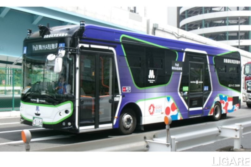 写真左:伊予鉄グループが運行する自動運転バス/写真右:大阪メトロが運行する自動運転バス(いずれも鎌田氏の撮影)