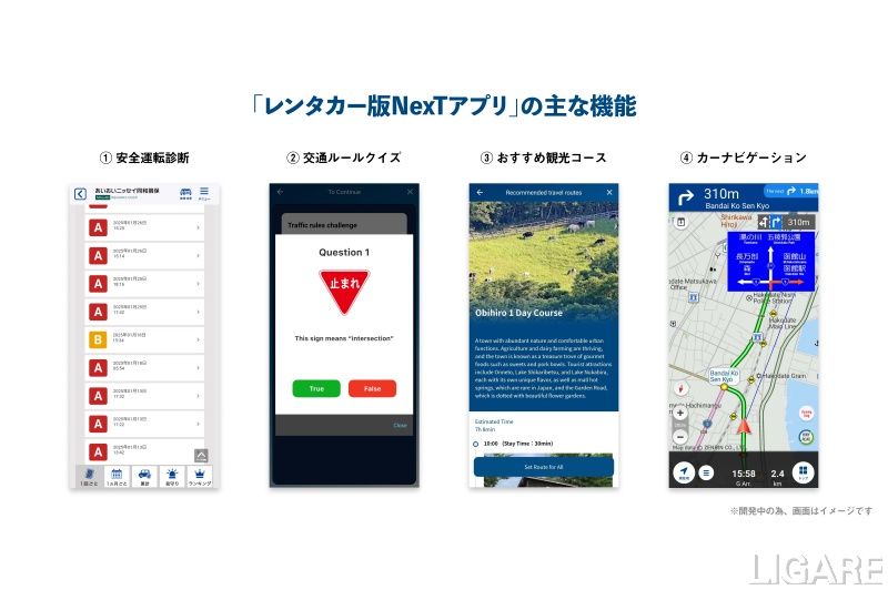 くわえて、3社は、「レンタカー版NexTアプリ」と「安全運転インセンティブ」による安全運転状況を検証し、有用であることが確認できた場合、2026年度を目処に、レンタカー版NexTアプリを活用した事故削減ソリューションの構築を目指す。そして、インセンティブ負担を考慮してアプリ利用料金等の調整等を行うことにより、レンタカー事業者の導入ハードルを下げるなど、全国各地での地域課題解決に貢献できるビジネスモデルを目指すと述べている。