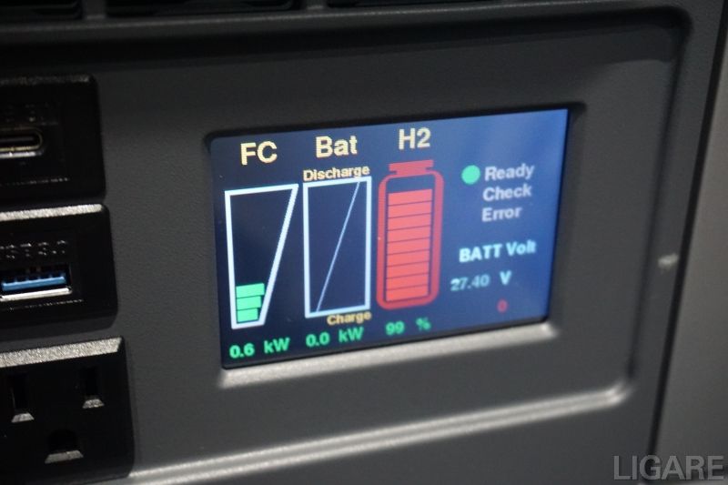 アイシンがこの分野で優位性を持つ背景には、長年にわたる燃料電池技術の蓄積がある。同社は1990年代から小型燃料電池の開発に着手し、家庭用燃料電池「エネファーム」で技術を蓄積してきた。さらに、トヨタMIRAIへの部品供給を通じて得た自動車用燃料電池の知見も有している。その蓄積は、空冷式FCモジュールの採用という点で生かされている。「自動車用の燃料電池は水冷式ですが、この製品には数kWクラスに最適化した空冷式を採用しました」と梶尾氏は語る。冒頭で述べた小型・軽量化を実現できた背景には、この点が大きく影響している。さらにMIRAIやエネファームの要素部品を流用することで、コスト削減と信頼性を向上させているという。