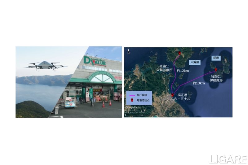 同実証実験は、五島市の「令和3年度五島市ドローンi-Landプロジェクト離島間無人物流実証事業」の採択内容に基づいて、2月9日から3月8日まで実施する。目的は、二次離島在住の人々の生活必需品ならびに医薬品を、地元の人が運航するドローンで輸送する、日常生活に根付いた物流体制モデルの構築に向けた検証だ。なお、日用品の配送サービスは、スーパーマーケット ダイキョーバリュー福江店で取り扱う商品を対象として2月9日から開始、処方箋医薬品の配送実証は3月4日から実施する。なお、医薬品は、検証のため偽薬品等を輸送する予定だ。