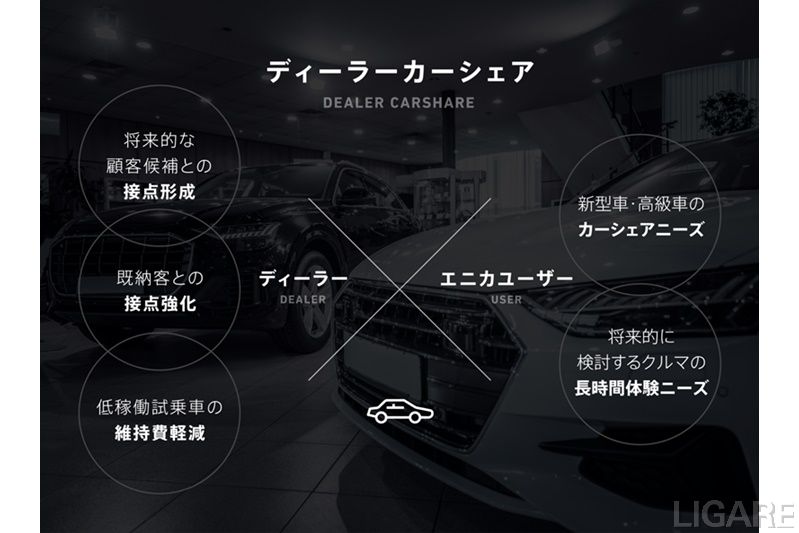 「エニカ」は、DeNA SOMPO Mobilityが運営しているカーシェアサービスだ。今回提供する「エニカオーナーズボード」を使うことで、カーシェア利用状況や各顧客の利用目的などを、ウェブベースの専用サイト上から店舗単位で横断的に確認、分析を行うことができる。自動車ディーラー向けカーシェアソリューション「ディーラーカーシェア」の加盟社を対象として提供するという。