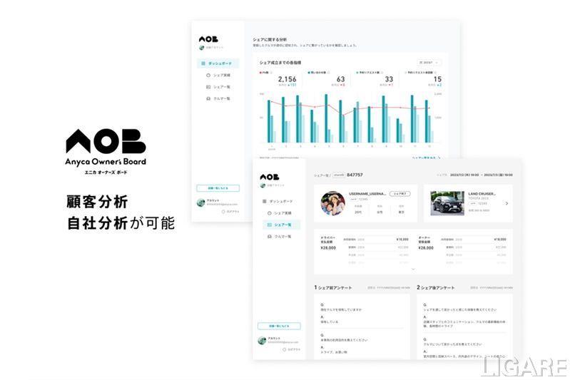 また、同社は、今回の提供開始に合わせて、ユーザーに対し、カーシェア利用前後に「購入意向の変化」の情報取得と「エニカオーナーズボード」上での情報提供も開始する。これにより、営業担当は、「意向にそった適切なコミュニケーションプランの設計(顧客分析)」が可能になる。くわえて、店舗マネージャーは、「見える化により、全体パフォーマンスの向上と機会損失の削減(自社分析)」が可能になるという。なお、同社は、将来的な集客機能などのアップデートも予定していると述べている。