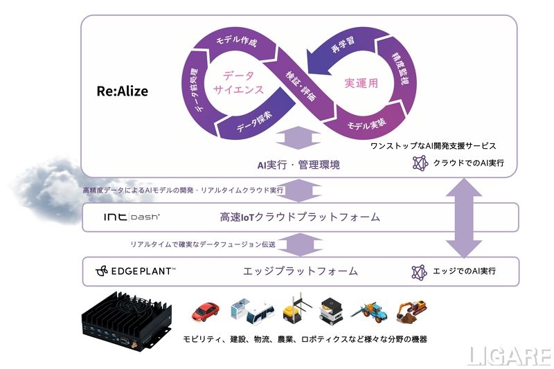 今回の提携では、こうした課題に向けて、マクニカの提供する「MMDP(MACNICA Mobility Data Platform)」にアプトポッドの提供する高速IoT基盤「intdash(イントダッシュ)」、およびエッジコンピューティング環境「EDGEPLANT(エッジプラント)」を組み合わせる。これにより、モビリティから取得するセンサーや動画像情報などの膨大なデータと目的別のAIを活用したエッジ・クラウドのハイブリッドデータプラットフォームの構築・提供を目指すという。