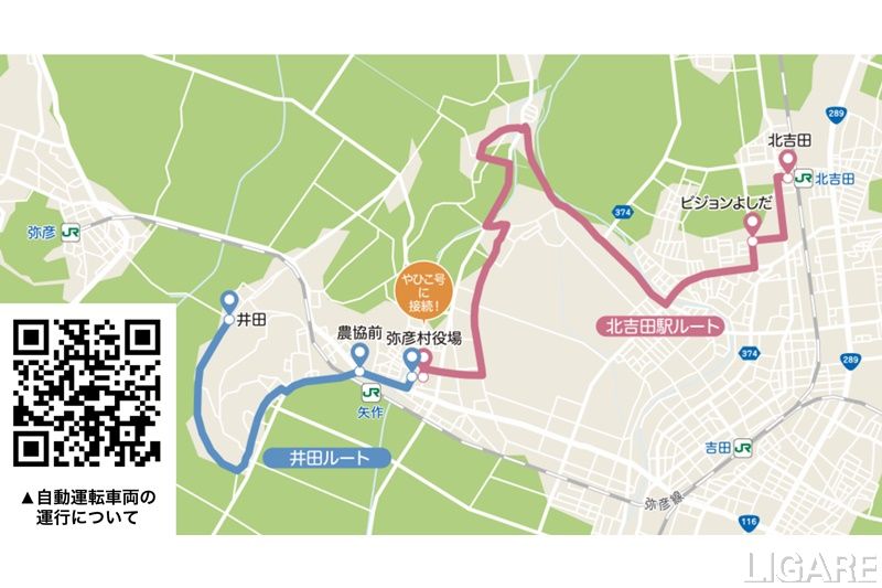 具体的には、「MiCa」が、弥彦村役場を起点とする北吉田ルート(片道約5.7km)と井田ルート(片道約2.5km)の2つのルートを走行する。今回の開始時では1台で運行し、2台目は車両の準備が整い次第、運行開始するという。