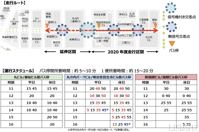 大丸有協議会とBOLDLY、自動運転バスで信号機付き交差点を走行