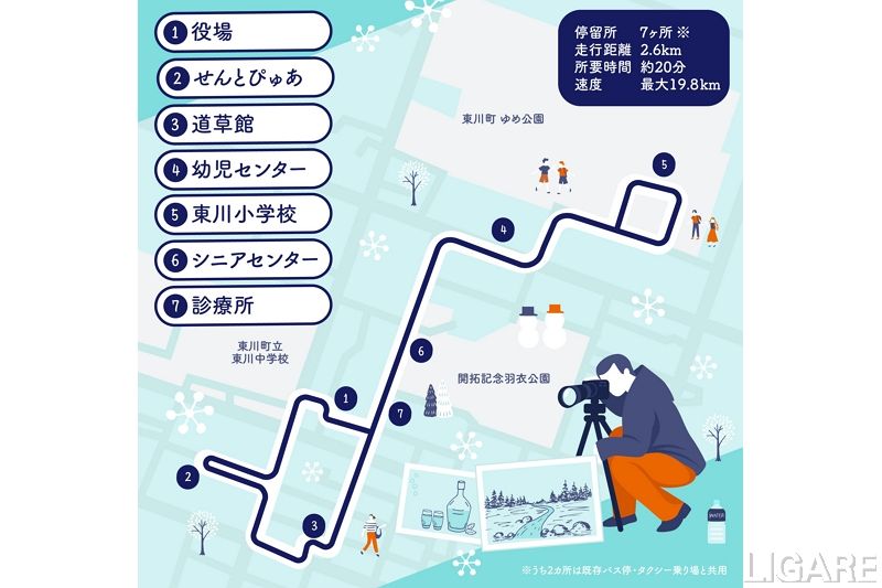 北海道東川町(以下、東川町)とBOLDLY株式会社(以下、BOLDLY)は、東川町役場などを通る1周約2.6kmのルートで、⾃動運転バス「NAVYA ARMA(ナビヤ アルマ)」の試運行を3月6日~10日に実施する。3月6日付のプレスリリースで明かした。
