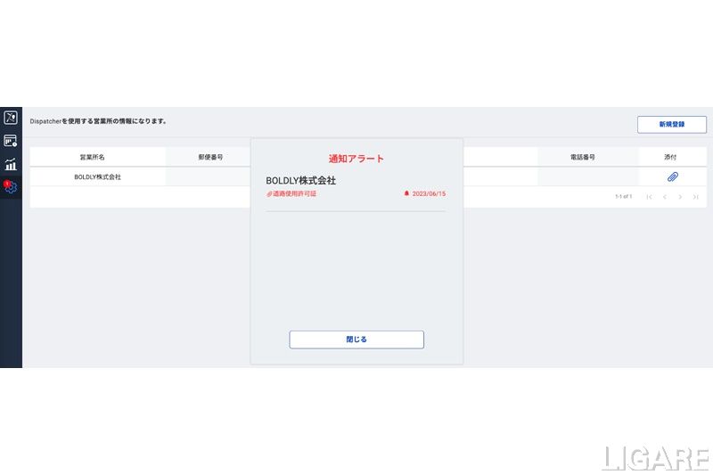 ほかにも、「地図カスタマイズ機能」では、GeoJSON※形式で地図上に任意の図形を描画し、そこに階数・色・名称などを指定して表示できる。「ライセンス期限通知機能」は、「Dispatcher」上で管理している車両や営業所、従業員それぞれに対して、各種許可証を登録して指定日に通知を出すことができる機能だ。