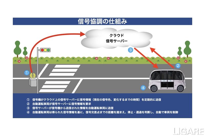 なお、自動運転バスの信号協調の方法は、「通信方式」「カメラ方式」の2種類がある。BOLDLYは、過去6回の実証を通して、自動運転バスには「通信方式」が必須であると結論づけている。しかしながら、「通信方式」による信号協調の社会実装のめどが立っていない。そのため、同実証において設置する信号協調用機器の維持管理や撤去費用などの理由で、最低限の2カ所に絞って信号協調を実施する。BOLDLYは、今後も政府などとの連携を図りながら、自動運転バスの実用化を推進し、交通課題の解決に取り組むと述べている。