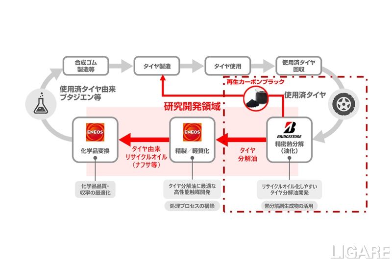株式会社ブリヂストン(以下、ブリヂストン)は6月8日、使用済みタイヤを熱分解することによって分解油や再生カーボンブラックを生成する取り組みを開始した。