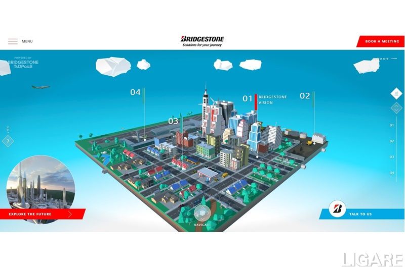 ブリヂストンの出展ウェブサイトでは、ブリヂストンが考える未来のサステナブルなモビリティ社会である架空都市「Bridgestone World」を訪問できる。「Bridgestone World」の中における都心部、郊外、産業や運送業の現場では、独自のソリューションビジネスのプラットフォーム「Bridgestone T&DPaaS」(Bridgestone Tire and Diversified Products as a Solution)を通じて、「断トツ商品」、「断トツサービス」、「断トツサービスネットワーク」といったリアルとデジタルの組み合わせによる「断トツソリューション」を疑似的に体感することができる。