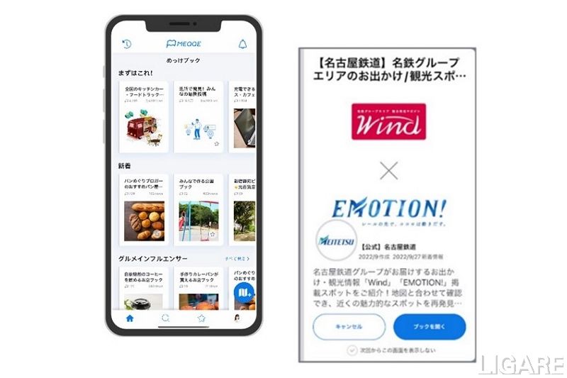さらに、「MEQQE」アプリ上に「名鉄グループエリアのおでかけ/観光スポット集」を掲載することで、双方のユーザーに同エリアの日常的な外出に役立つ情報を届ける。