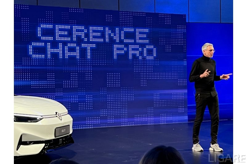 世界から5000以上のメディアが集まるメディアデイのトップで開催されたフォルクスワーゲンのプレスカンファレンスは、AIが大きな話題となった今年のCESを象徴するかのような内容であった。ステージ上のスクリーンにはフォルクスワーゲンと、モビリティ業界向けに最新のコネクテッドテクノロジーを提供するCerence Inc.(以下、セレンス)のロゴが同じ大きさで並び、その下にドットで「AI ONBOARD」という文字が大きく書かれ、開始前から参加者の期待を膨らませていた。