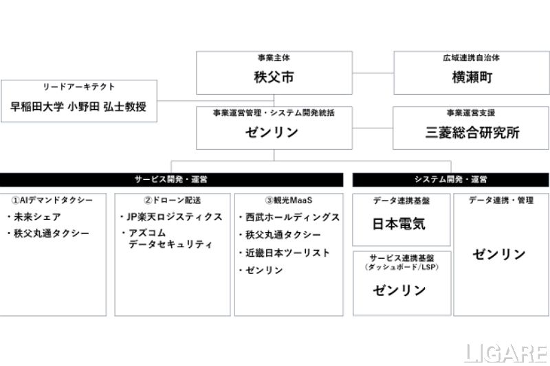 秩父市・横瀬町は、山間部が多く、生活インフラが脆弱という課題を抱えている。同協議会は、これらの課題解決に向け、「AIによるデマンド交通」、「ドローンによる緊急物資配送」、「観光MaaS」の各サービスを、広域事業として実施することで運営体制の効率化を図っている。
